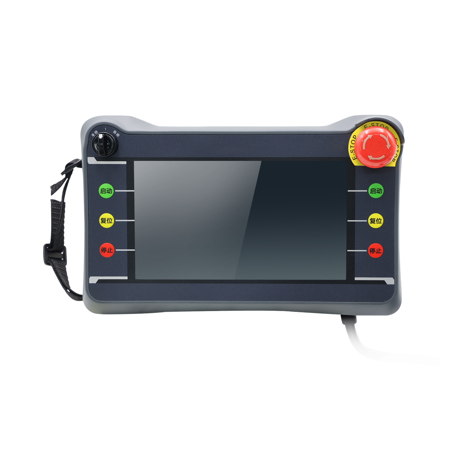 Powered by a dual-core 1 GHz processor with 256 MB RAM and 4 GB storage, the HMI ensures smooth performance and reliable multitasking for a variety of industrial applications. Standard features include Ethernet port, serial port, emergency stop switch, dual selection, and programmable buttons, providing versatile control and communication options.